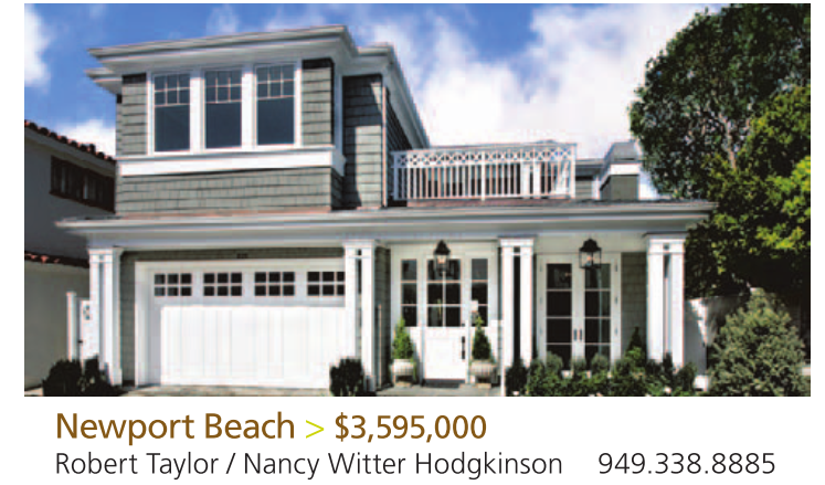 Newport Beach > $3,595,000 Robert Taylor / Nancy Witter Hodgkinson 949.338.8885