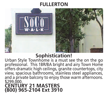Urban Style Townhome is a must see the on the go professional. This 1BR/BA bright and airy Town Home offers dramatic high ceilings, granite countertops, city view, spacious bathrooms, stainless steel appliances, and a private balcony to enjoy those warm afternoons. $299,000. CENTURY 21 MASTERS (800) 965-2104 Ext 3910