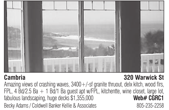 Becky Adams / Coldwell Banker Kellie & Associates 805-235-2258