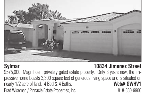 Sylmar 10834 Jimenez Street $575,000. Magnificent privately gated estate property. Only 3 years new, the impressive