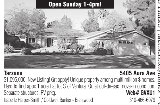 Tarzana 5405 Aura Ave $1,095,000. New Listing! Grt oppty! Unique property among multi million $ homes.