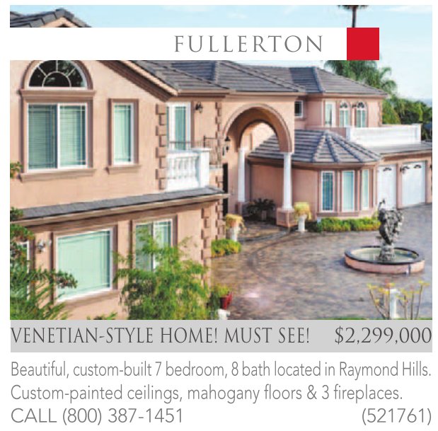 VENETIAN-STYLE HOME! MUST SEE! $2,299,000 Beautiful, custom-built 7 bedroom, 8 bath located in Raymond Hills. Custom-painted ceilings, mahogany floors & 3 fireplaces. CALL (800) 387-1451 (521761)