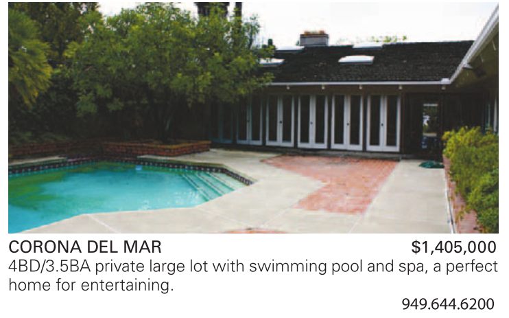 CORONA DEL MAR $1,405,000 4BD/3.5BA private large lot with swimming pool and spa, a perfect home for entertaining.