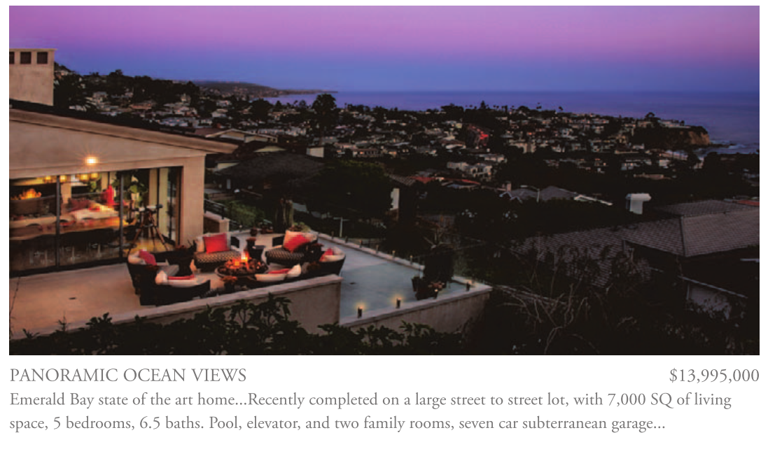PANORAMIC OCEAN VIEWS $13,995,000 Emerald Bay state of the art home...Recently completed on a large street to street lot, with 7,000 SQ of living space, 5 bedrooms, 6.5 baths. Pool, elevator, and two family rooms, seven car subterranean garage...