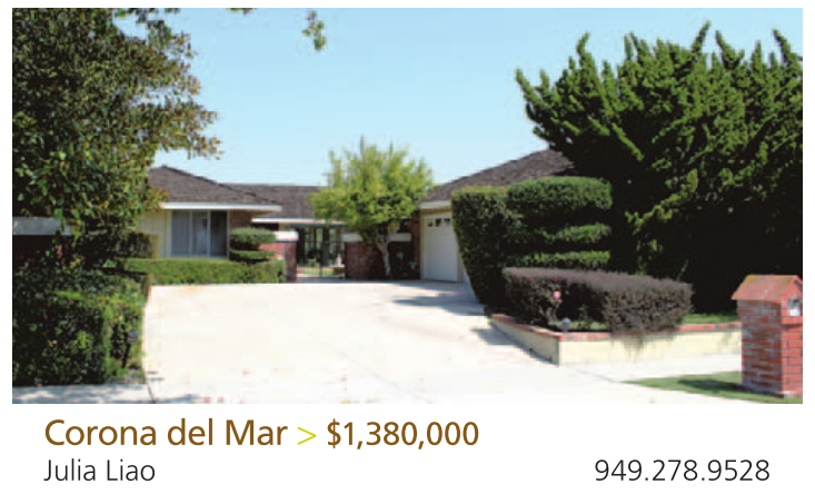 Corona del Mar > $1,380,000 Julia Liao 949.278.9528