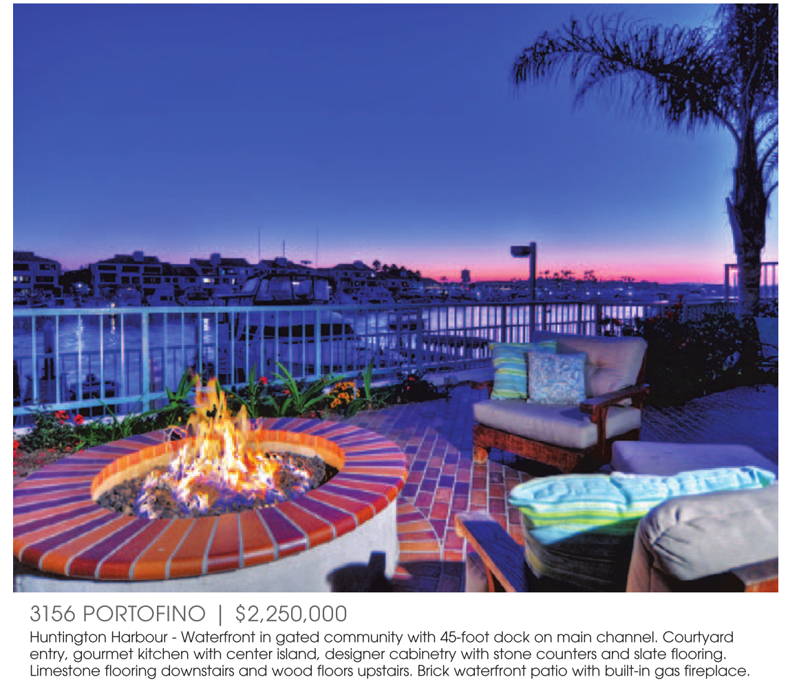 Huntington Harbour - Waterfront in gated community with 45-foot dock on main channel. Courtyard entry, gourmet kitchen with center island, designer cabinetry with stone counters and slate flooring. Limestone flooring downstairs and wood floors upstairs. Brick waterfront patio with built-in gas fireplace.