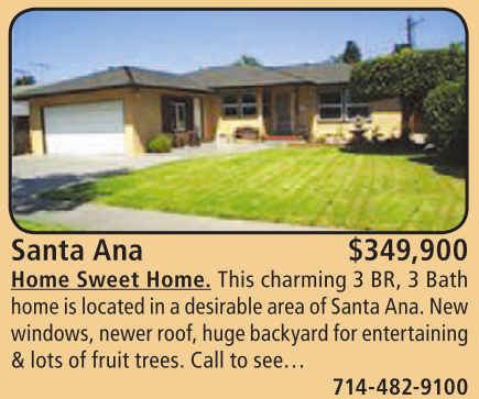 Santa Ana $349,900 Home Sweet Home. This charming 3 BR, 3 Bath