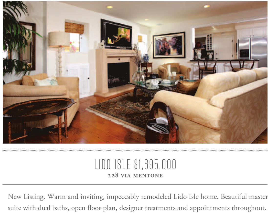 New Listing. Warm and inviting, impeccably remodeled Lido Isle home. Beautiful master suite with dual baths, open floor plan, designer treatments and appointments throughout.