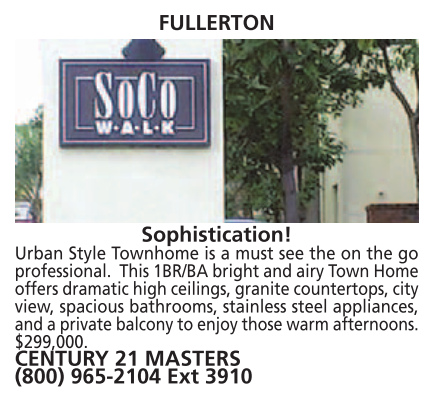 Urban Style Townhome is a must see the on the go professional. This 1BR/BA bright and airy Town Home offers dramatic high ceilings, granite countertops, city view, spacious bathrooms, stainless steel appliances, and a private balcony to enjoy those warm afternoons. $299,000. CENTURY 21 MASTERS (800) 965-2104 Ext 3910