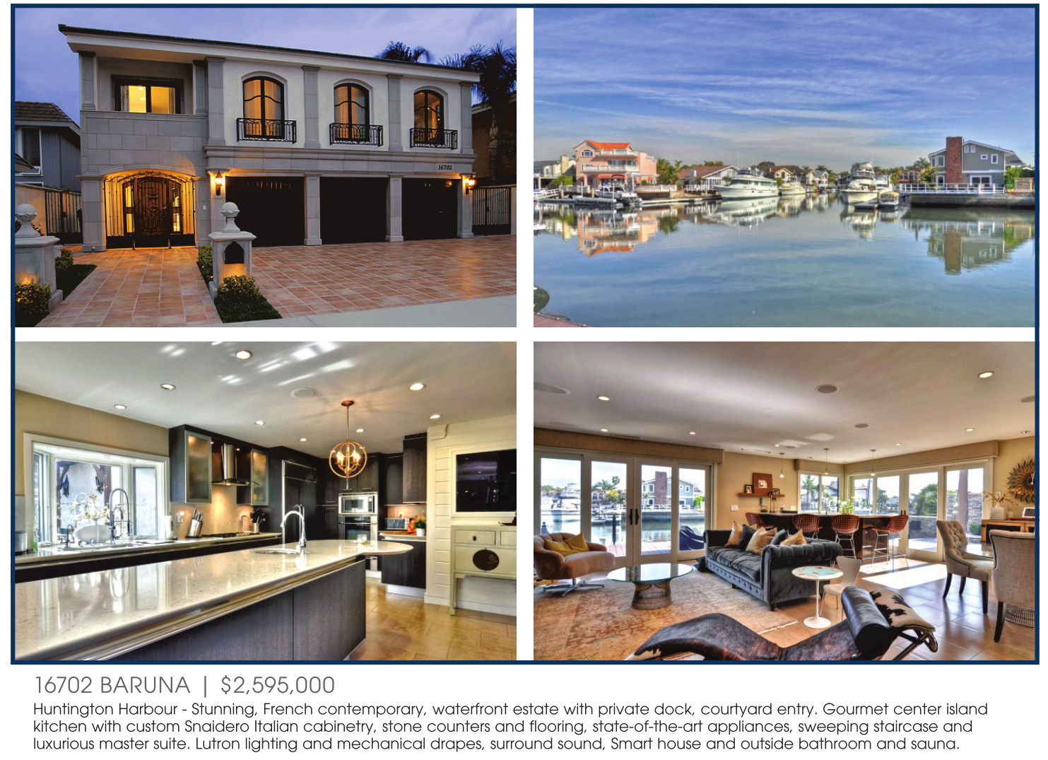 Huntington Harbour - Stunning, French contemporary, waterfront estate with private dock, courtyard entry. Gourmet center island kitchen with custom Snaidero Italian cabinetry, stone counters and flooring, state-of-the-art appliances, sweeping staircase and luxurious master suite. Lutron lighting and mechanical drapes, surround sound, Smart house and outside bathroom and sauna.