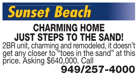 2BR unit, charming and remodeled, it doesn’t get any closer to “toes in the sand” at this price. Asking $640,000. Call 949/257-4000
