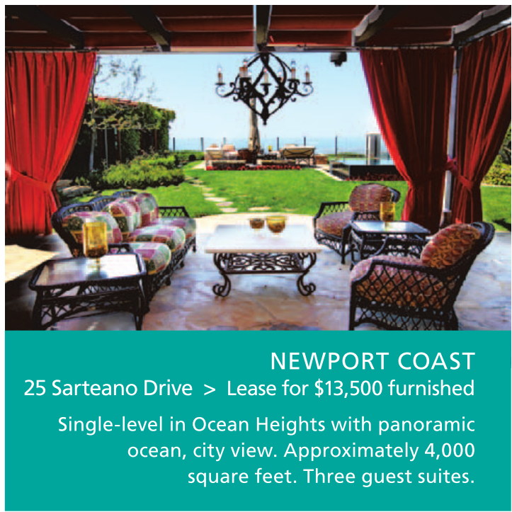 NEWPORT COAST 25 Sarteano Drive > Lease for $13,500 furnished