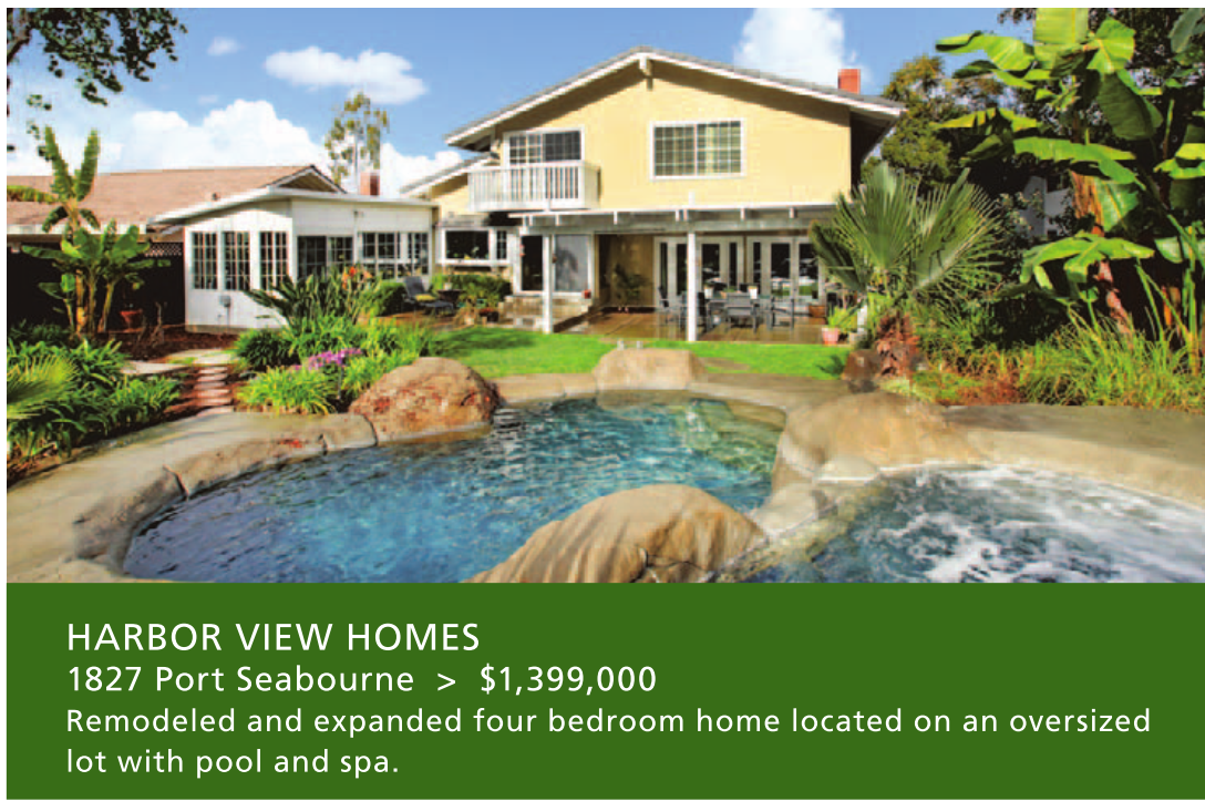 HARBOR VIEW HOMES 1827 Port Seabourne > $1,399,000 Remodeled and expanded four bedroom home located on an oversized lot with pool and spa.