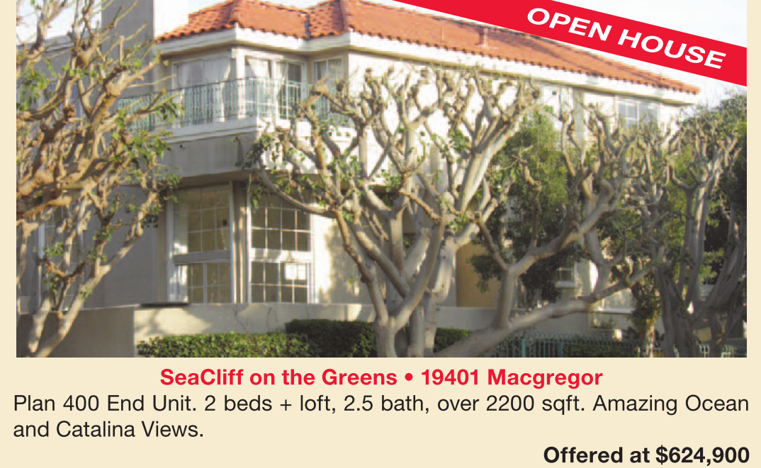 SeaCliff on the Greens • 19401 Macgregor Plan 400 End Unit. 2 beds + loft, 2.5 bath, over 2200 sqft. Amazing Ocean and Catalina Views.