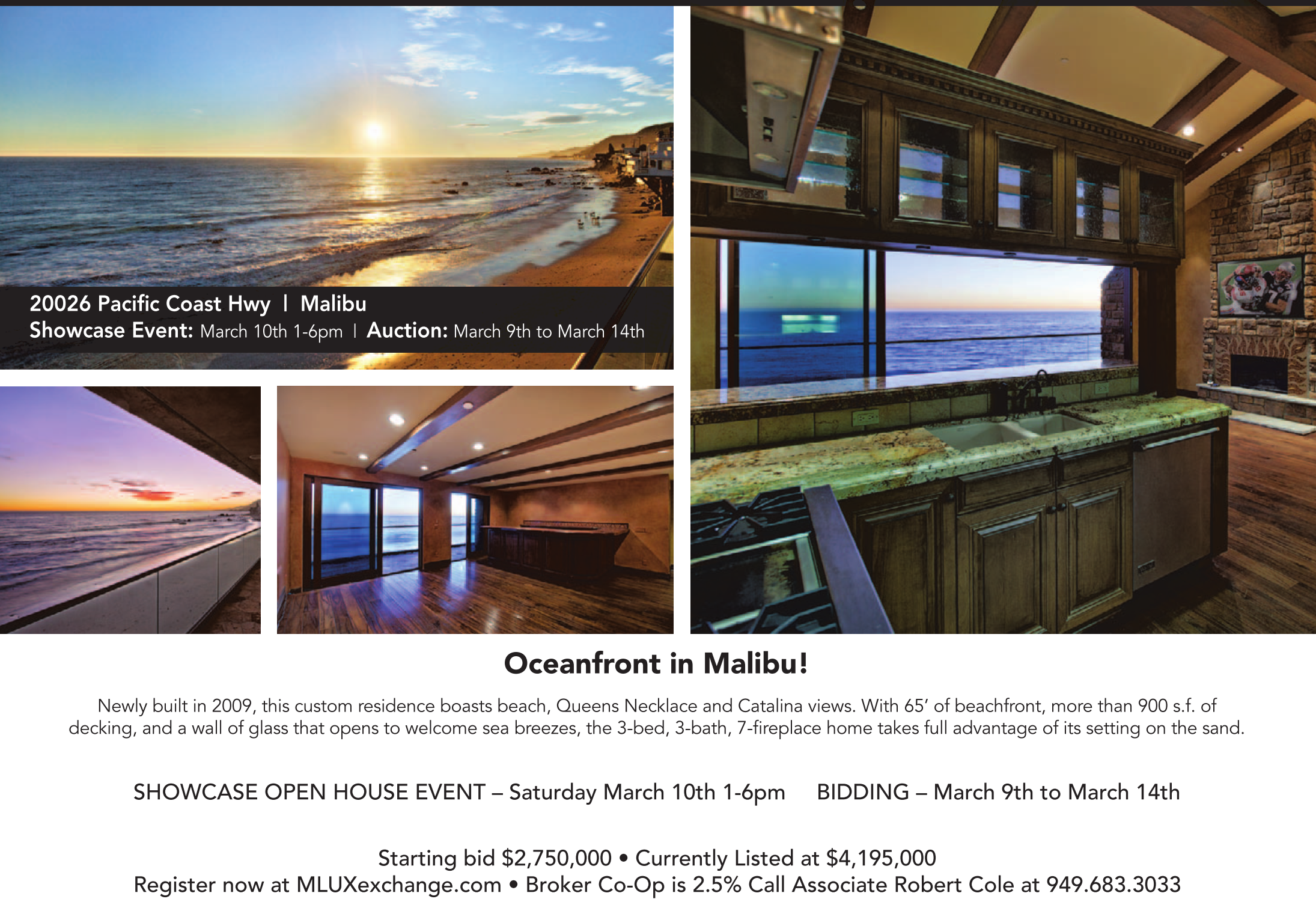 20026 Pacific Coast Hwy | Malibu Showcase Event: March 10th 1-6pm | Auction: March 9th to March 14th