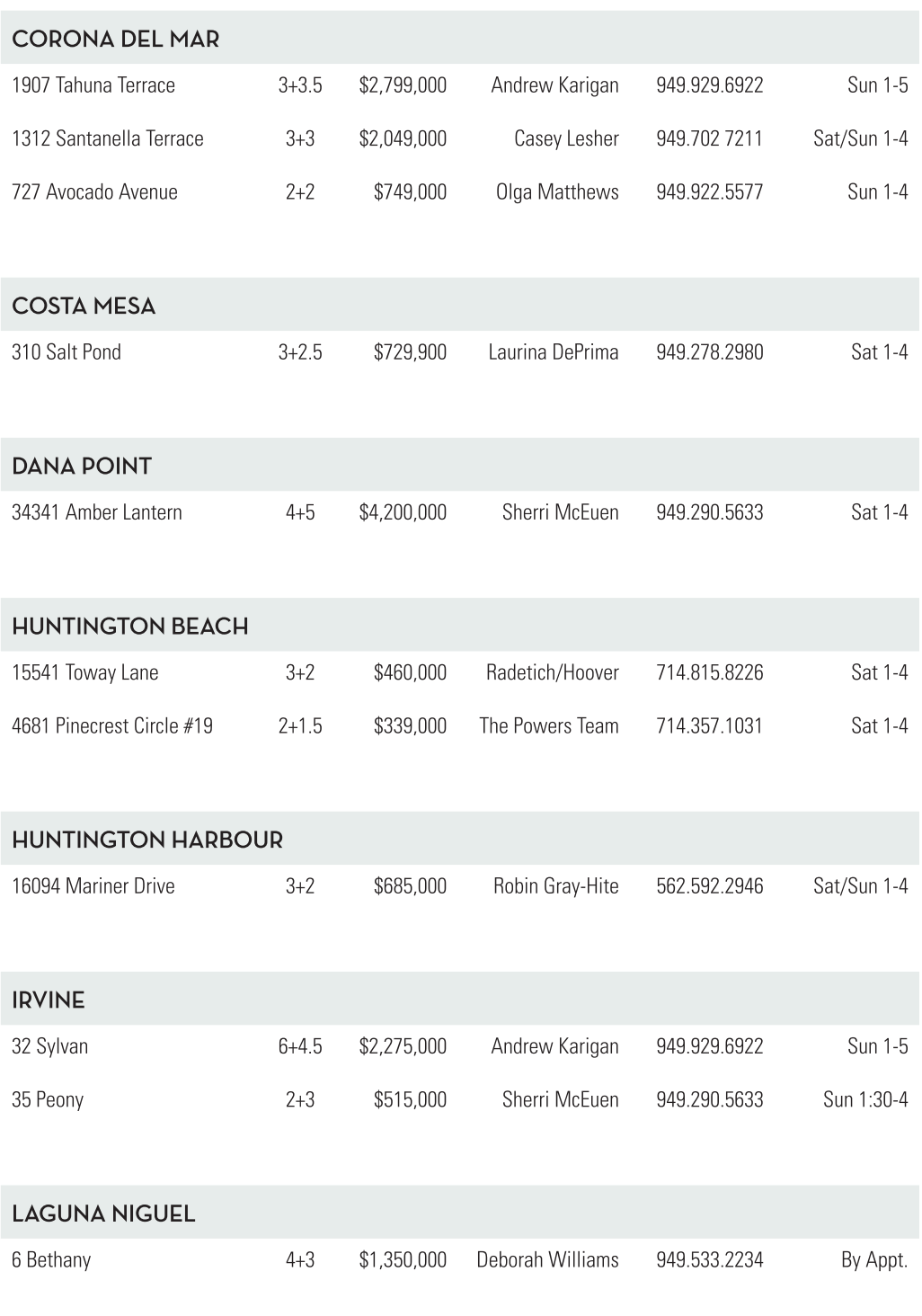 32 Sylvan 6+4.5 $2,275,000 Andrew Karigan 949.929.6922 Sun 1-5