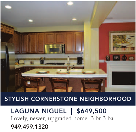 LAGUNA NIGUEL | $649,500 Lovely, newer, upgraded home. 3 br 3 ba. 949.499.1320
