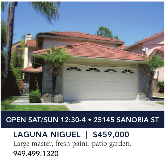LAGUNA NIGUEL | $459,000 Large master, fresh paint, patio garden. 949.499.1320