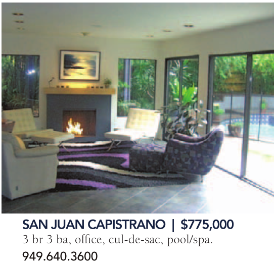 SAN JUAN CAPISTRANO | $775,000 3 br 3 ba, office, cul-de-sac, pool/spa. 949.640.3600