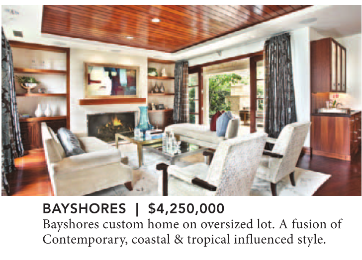 BAYSHORES | $4,250,000 Bayshores custom home on oversized lot. A fusion of Contemporary, coastal & tropical influenced style.