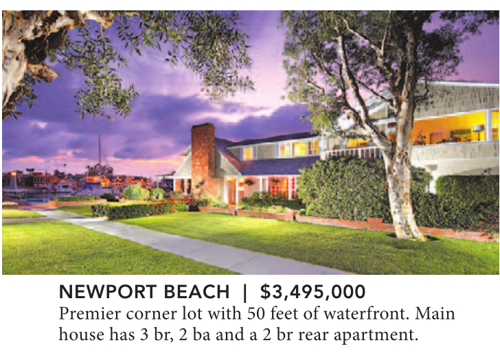 NEWPORT BEACH | $3,495,000 Premier corner lot with 50 feet of waterfront. Main house has 3 br, 2 ba and a 2 br rear apartment.