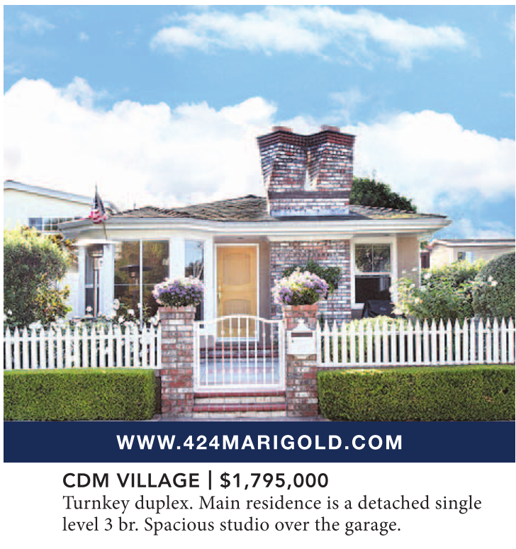 CDM VILLAGE $1,795,000 Turnkey duplex. Main residence is a detached single level 3 br. Spacious studio over the garage.