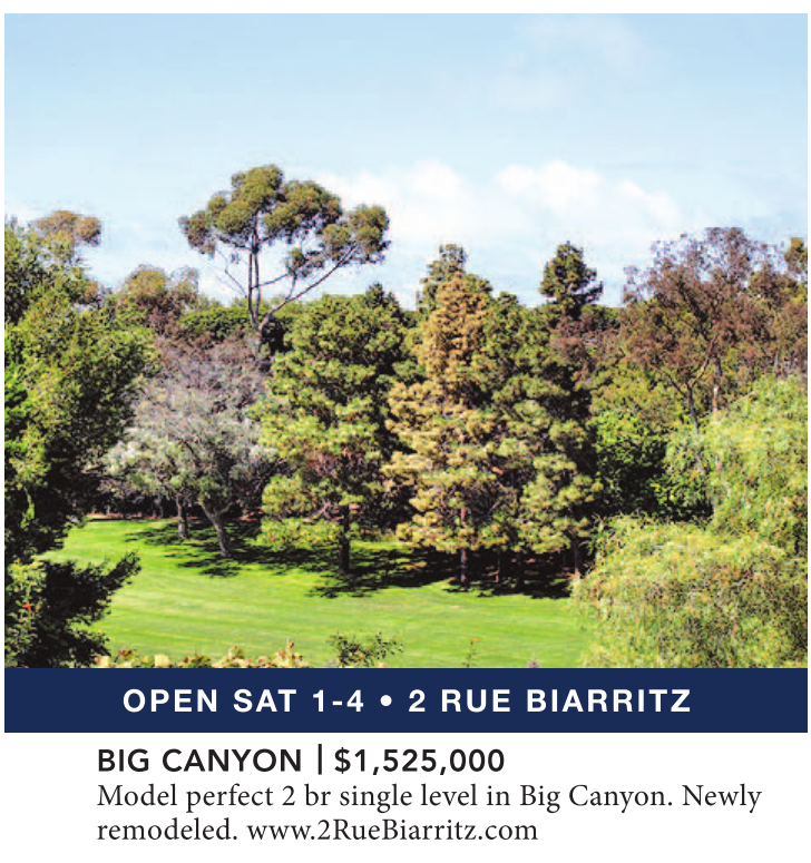 BIG CANYON $1,525,000 Model perfect 2 br single level in Big Canyon. Newly remodeled. www.2RueBiarritz.com
