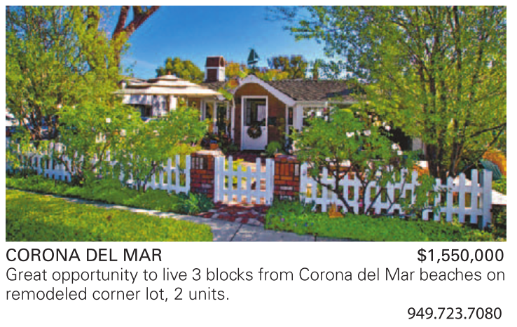 CORONA DEL MAR $1,550,000 Great opportunity to live 3 blocks from Corona del Mar beaches on remodeled corner lot, 2 units.