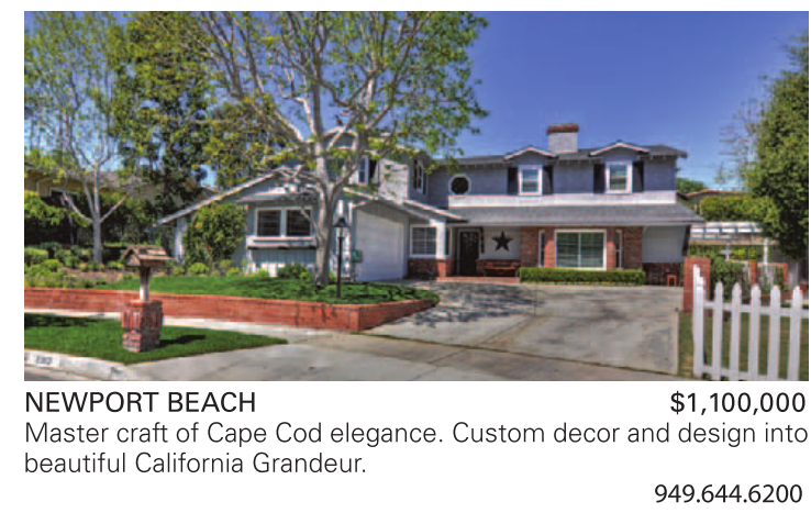 NEWPORT BEACH $1,100,000 Master craft of Cape Cod elegance. Custom decor and design into beautiful California Grandeur.