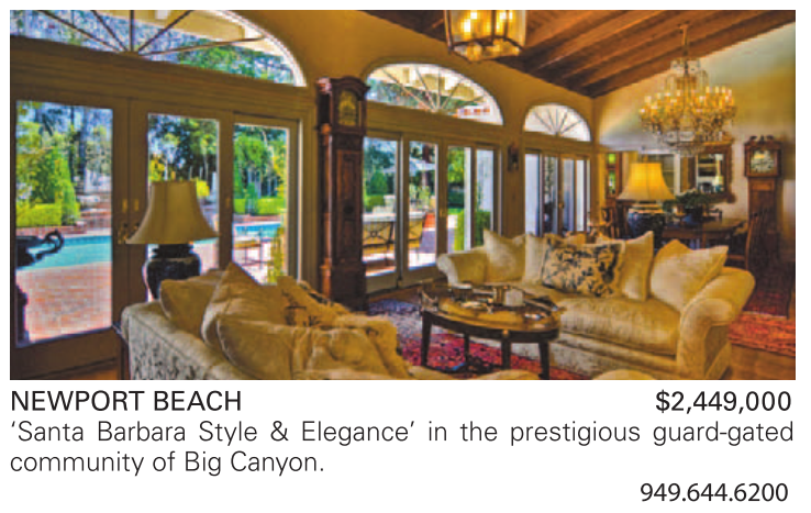 NEWPORT BEACH $2,449,000 ‘Santa Barbara Style & Elegance’ in the prestigious guard-gated community of Big Canyon.