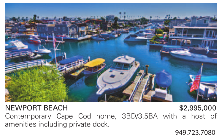 NEWPORT BEACH $2,995,000 Contemporary Cape Cod home, 3BD/3.5BA with a host of amenities including private dock.