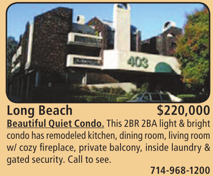 Long Beach $220,000 Beautiful Quiet Condo. This 2BR 2BA light & bright