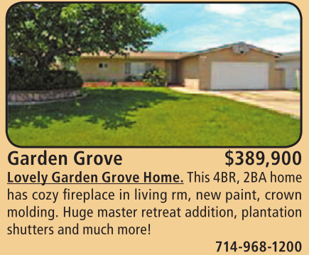 Garden Grove $389,900 Lovely Garden Grove Home. This 4BR, 2BA home
