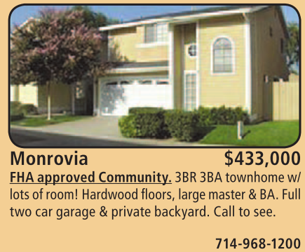 Monrovia $433,000 FHA approved Community. 3BR 3BA townhome w/