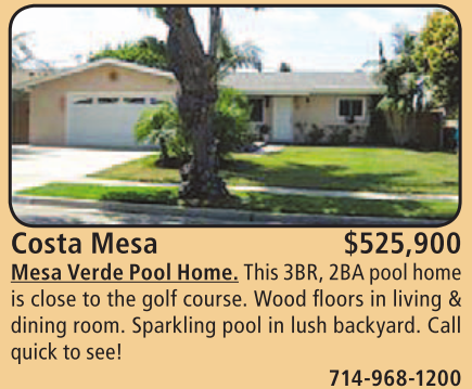 Costa Mesa $525,900 Mesa Verde Pool Home. This 3BR, 2BA pool home
