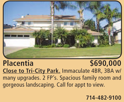 Placentia $690,000 Close to Tri-City Park. Immaculate 4BR, 3BA w/