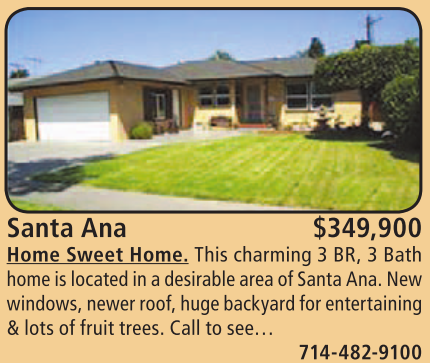 Santa Ana $349,900 Home Sweet Home. This charming 3 BR, 3 Bath