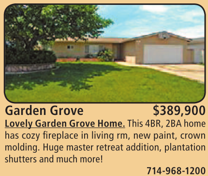 Garden Grove $389,900 Lovely Garden Grove Home. This 4BR, 2BA home
