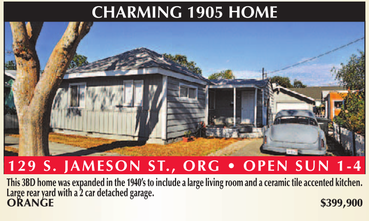 This 3BD home was expanded in the 1940’s to include a large living room and a ceramic tile accented kitchen. Large rear yard with a 2 car detached garage. ORANGE $399,900