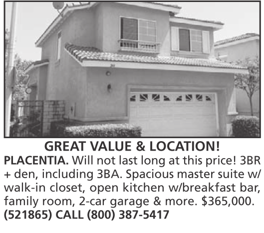 PLACENTIA. Will not last long at this price! 3BR