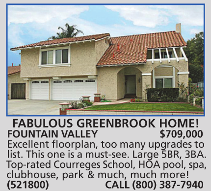 FOUNTAIN VALLEY $709,000 Excellent floorplan, too many upgrades to list. This one is a must-see. Large 5BR, 3BA.