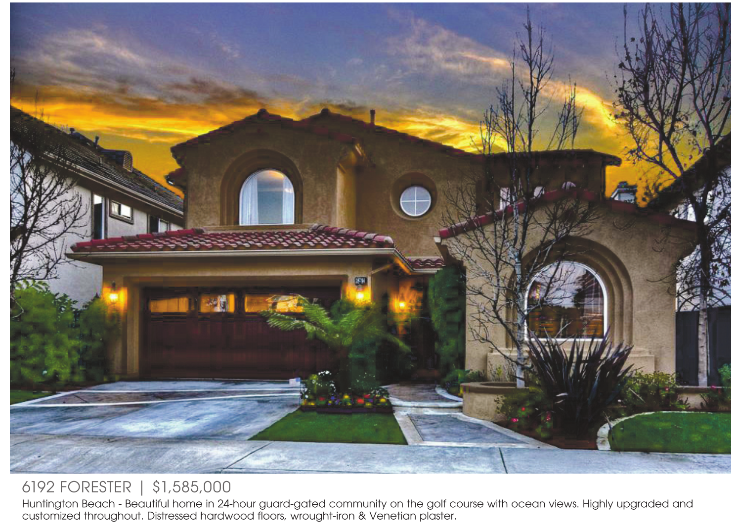 Huntington Beach - Beautiful home in 24-hour guard-gated community on the golf course with ocean views. Highly upgraded and customized throughout. Distressed hardwood floors, wrought-iron & Venetian plaster.