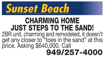 2BR unit, charming and remodeled, it doesn’t get any closer to “toes in the sand” at this price. Asking $640,000. Call 949/257-4000