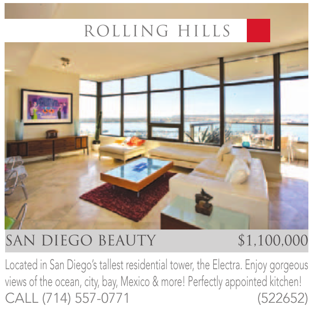 Located in San Diego’s tallest residential tower, the Electra. Enjoy gorgeous views of the ocean, city, bay, Mexico & more! Perfectly appointed kitchen! CALL (714) 557-0771 (522652)