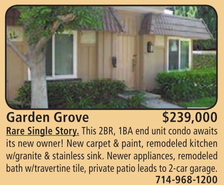 Garden Grove $239,000 Rare Single Story. This 2BR, 1BA end unit condo awaits