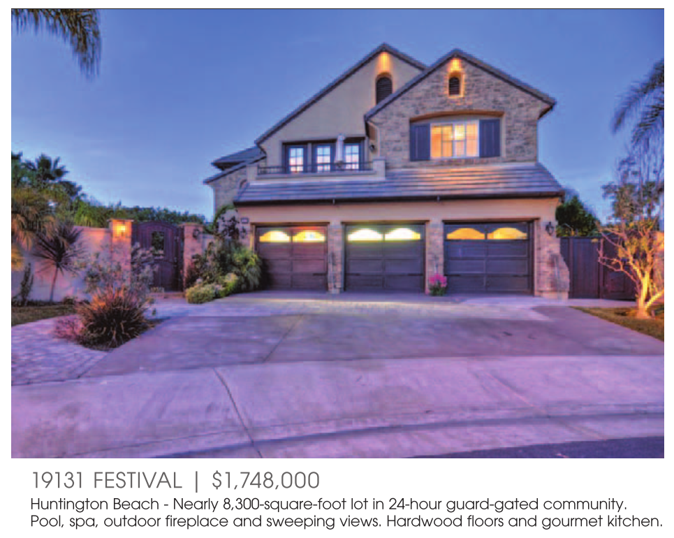 Huntington Beach - Nearly 8,300-square-foot lot in 24-hour guard-gated community. Pool, spa, outdoor fireplace and sweeping views. Hardwood floors and gourmet kitchen.