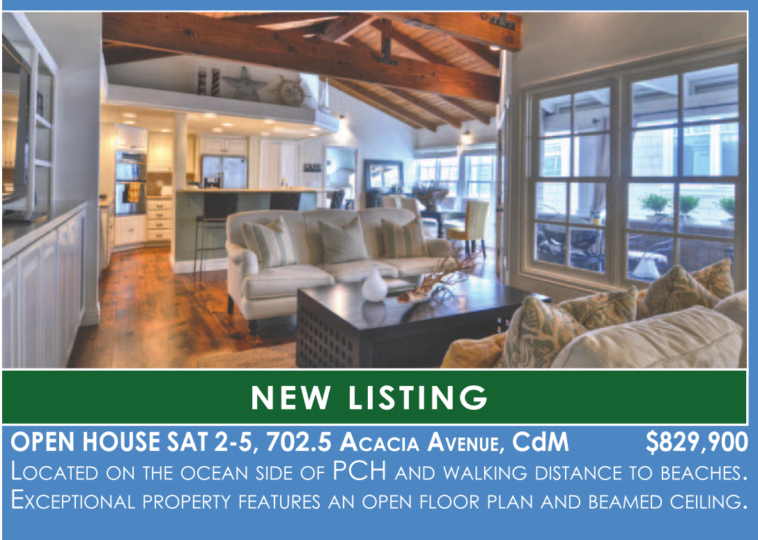 OPEN HOUSE SAT 2-5, 702.5 ACACIA AVENUE, CdM $829,900 LOCATED