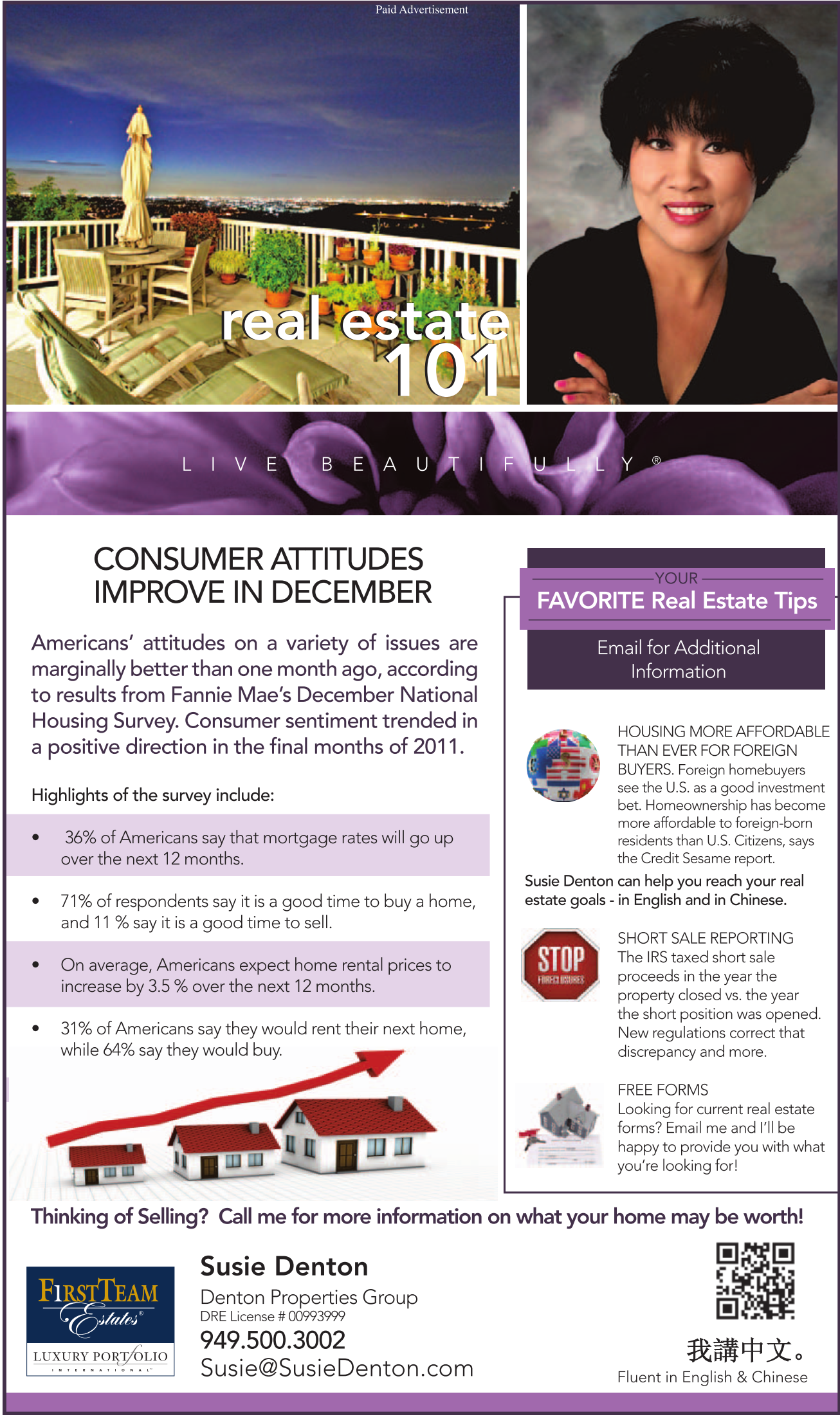 Susie Denton can help you reach your real estate goals - in English and in Chinese.