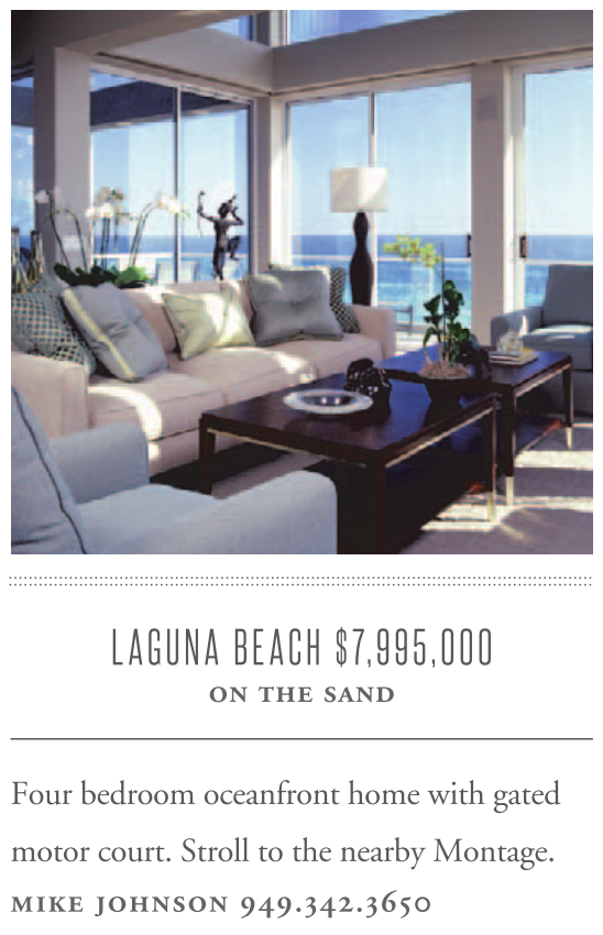 motor court. Stroll to the nearby Montage. mike johnson 949.342.3650
