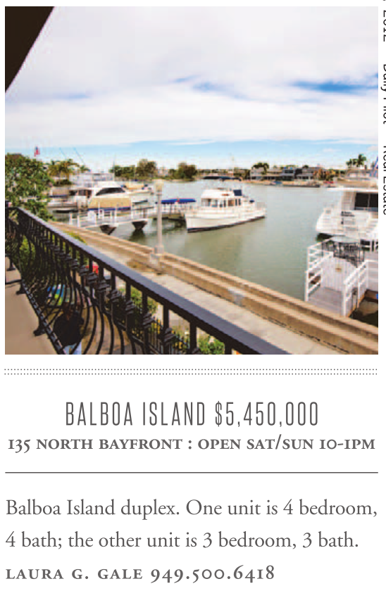 Balboa Island duplex. One unit is 4 bedroom, 4 bath; the other unit is 3 bedroom, 3 bath. laura g. gale 949.500.6418